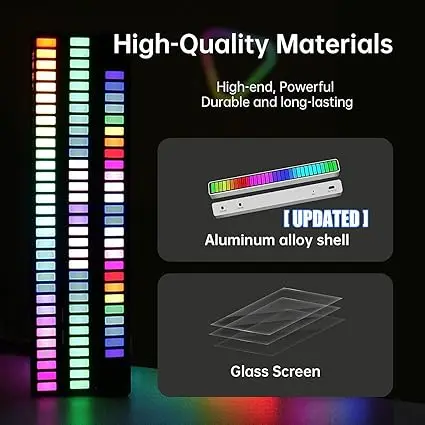- Construcción Prémium: La luz de ritmo está cubierta por una carcasa de aleación de aluminio resistente y duradera, que le confiere un aspecto elegante y moderno, ideal para cualquier configuración.