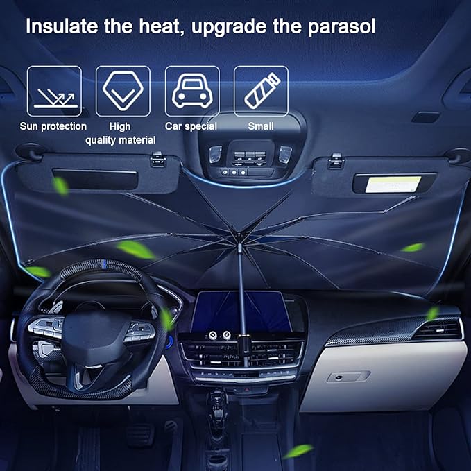 Parasol interior para coche?? cubierta de parabrisas, protección UV? parasol para ventana delantera, paraguas plegable?le permite que la temperatura dentro de su carro baje y se refresque ??se puede guardar con facilidad y subte toda la parte delantera del auto ☀️⚡️